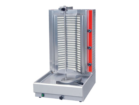 High quality shawarma grills that cook the kebabs or meats evenly.  Suitable for broiler meat with < 400 mm diameter  Three high efficiency heating elements with separate controls  Each heating element can be adjusted at 3.3kW, 1.65 kW or 0.825 kW  Rotation speed : 2.5 RPM