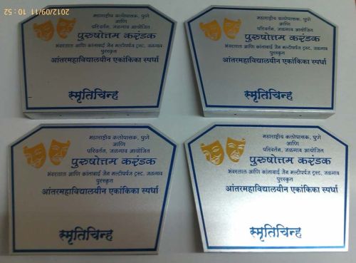 We manufacture name platesshield plates for shields & mementos as per customers requirements in aluminum, brass, st.steel & copper as per specifications.
