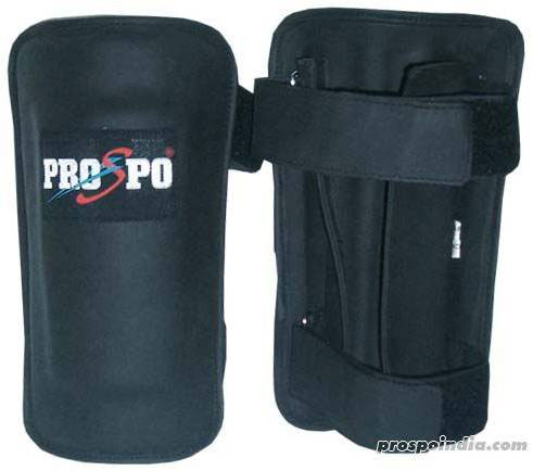 We are offering shin pads. synthetic leather construction injection moulded padding for extra protection inner vents for extra protection velcro straps available in – red, blue & black colours size: m, l, xl.