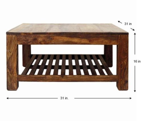 We are offering Coffee Table. this table is made by solid indian shisham wood size = 31''x31''x18'' medium antique finsh with sealer laquer packing as buyer required