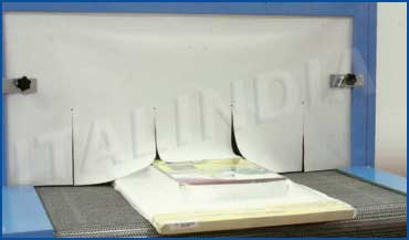 Perfectly shrink wrapped panels exit from the Shrink tunnel Products exit from Shrink tunnel Manufactured by: Italindia Packplus Pvt Ltd Model: Shrink Tunnel