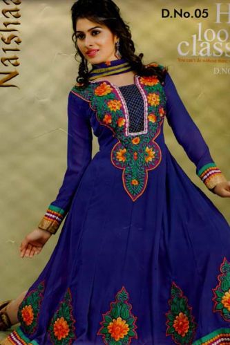 We, shruti creations are manufactures, exporters and traders in all types of unstitched dress materials, georgette anarkali with beautiful embroidery patch work dress material. georgette anarkali with beautiful embroidery patch work silk bottom & siffon dupatta