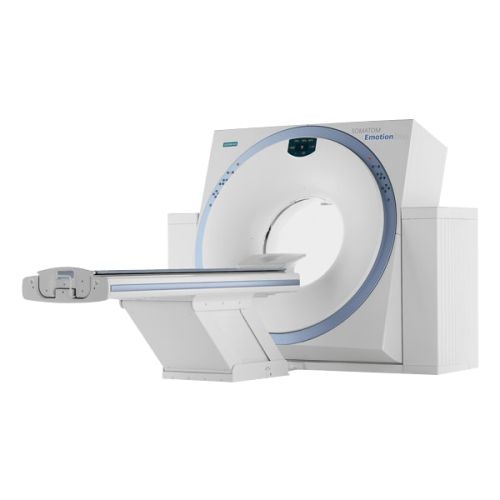 Powerful and cost-effective, a used Siemens Emotion CT scan machine features a 70cm aperture, a 50cm scan field and patient table. Offering reconstruction on the fly with up to 16 images per second, the Siemens Emotion performs both routine and detailed, high resolution exams with ease.