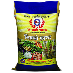 Sikko Fast provides many secondary and major nutrients to the plants Benefits : Increases root development of the plants Increases the growth of the plants because of fast growth of the roots. Increases disease resistant power of the plants. Make Soil smooth and healthy. Increases water holding capacity of the soil. Dose 200 to 250 kg per acre for long duration crops. 150 to 200 kg per acre for short duration crops. Sikko Fast is totally chemical free product because it is manufactured by all natural minerals.