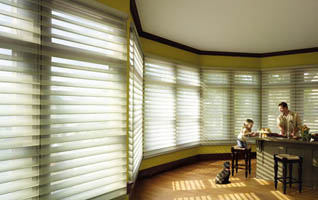 With the choice of 2", 3" and 4" vane choices, Silhouette® window shadings transform the light in a room. Silhouette shadings have a unique construction with different fabric opacities that allow the customer to choose from transparent, semi-opaque or light-dimming fabrics. The Palette fabric-covered headrail gives a finished look to the shading. The EasyRise™ lifting system with continuous cord loop disperses the weight evenly across the shading, making even the largest shading easy to raise.