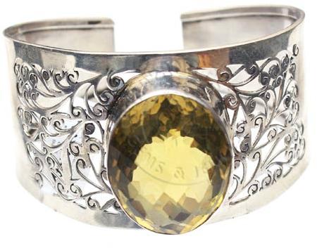 We are offering silver bracelet. Silver(92.5) bracelet studded with semi precious stone. Metal : silver(92.5) type : oxidized shape : arch size : horizontal(2.10), vertical(2.4) stone : semi precious(lemon topaz) weight : 72 gm