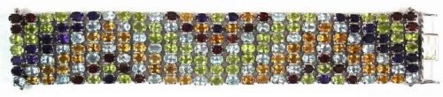We are offering silver bracelet-29. this is an seven line bracelet having all semi-precious gemstones in each single line which gives a different & bold look. perfect combination of multi color gemstones is done by our master artisan to give more beautiful look. we also have one line, two line, three line, five line, seven line & nine line bracelet as well.