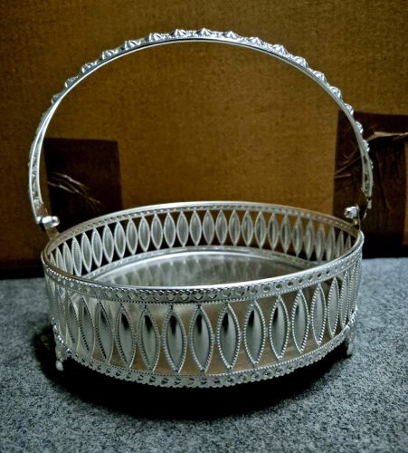 Metal Round hamper basket with foldable handle in Shiny Silver Finish for Gifting purpose and for Home Decor Luxury