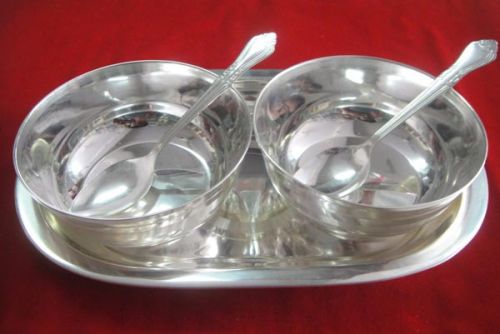 Our valuable clients can avail Silver Plated Plain Bowl Set from us in unique designs and various shapes. The Silver Plated Plain Bowl Set, offered by us, is widely appreciated for its mesmerizing look, excellent finish and durable luster. Our Silver Plated Plain Bowl Set comprises of different number of bowls that are perfect for serving Dal, Curd, Cutney, dessert etc. We are an eminent Silver Plated Plain Bowl Set Supplier in India.