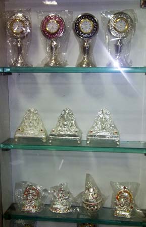 We are a prominent manufacturer and supplier of Silver Pooja Items in India. We manufacture all pooja items from pure silver to make them perfect for rituals, which includes silver idols, thalis and many more. These attractive Silver Pooja items are used in diwali, raksha bandhan, laxmi puja and other traditional ceremonies. Our collection of Silver Pooja Items are artistically designed by our skilled designers.