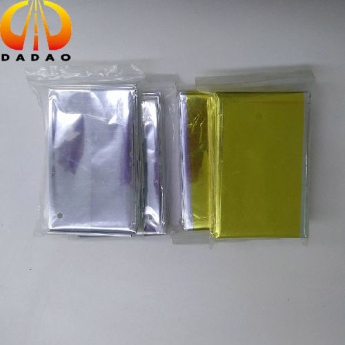 Contact SupplierSurvival blanket Our survival is made from metallized PET film ,extremely light weight,flexible and can retain 90% body heat in cold weather.The silver side of survival blanket reflective light protects the body from the heat.and The gold side reflective light and cause attention.It is perfect for camping trips and sporting events in addtion to emergencies.It is Mainly used for mountain climbing, fire fighting, rescue and military in the world. our common survival blanket size is 210x160cm,210x140cm and 210x130cm etc. we can accept customized size silver survival blanket 210x160cm Specification: Available color: Goldsilver, silversilver. orangesilver, greensilver, accept customer new products Available size: 130*210cm(52x84")  140*210cm(54*84)  160*210cm(56*84") or OEM is accepted Available certification: SGS & CE Pack way &Container information: 1pc per pp bag, 250pcs per carton, carton size: 47*28*28cm  160,000pcs per 20"FCL  394,000pcs per 40"HQ Features: 1) Keep body warm and reflects lights2) Easy carried, lightweight and pocketful3) Excellent colourfasting4) As a fist aid kits in emergency Application: 1) Mountain climbing 2) Fire