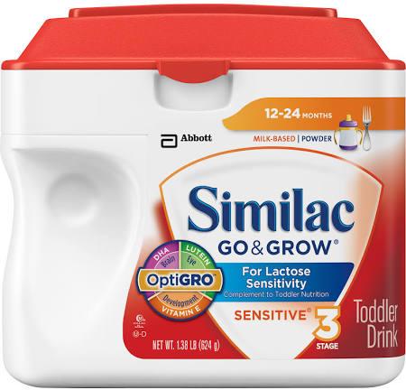 For lactose sensitivity. Complement to toddler nutrition. New. Now for toddlers. OptiGro: DHA - brain; Lutein - eye; Vitamin E - development. Over 25 Essential Vitamins and Minerals: At least 30% DV per serving: iron; calcium; vitamins C & E. Gluten free. Galacto-oligosaccharides are prebiotics sourced from milk (GOS). C. cohnii oil is a source of DHA. M. alpina oil is a source of ARA. Have product questions? Call 1-800-515-7677, 8:30 am-5:00 pm, Eastern time, weekdays