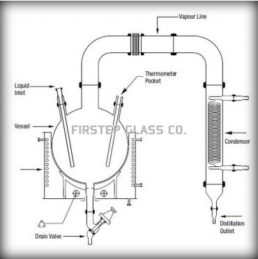 This Unit consists of a vessel mounted in a heating bath/mantle and fitted with a condenser for condensing the fumes. Receiver with drain valve can be added for receiving the condensed material. The unit is available in vessel capacity of 10, 20, 50, 100, 200 and 300 Ltr. and is suitable for operation under atmospheric pressure and full vacuum.