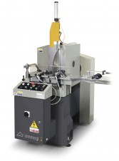 Single head cutting-off machine with horizontal blade feed and left loading side, pneumatic double side tilting of the cutting head in fixed positions: 45° to the left plus 90°, 45° and 22°30’ to the right. A special positive stop also allows cutting at intermediate angles. Â