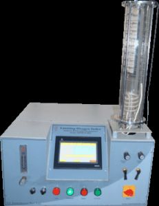 Critical limiting Oxygen Index apparatus is used for determining the minimum percentage of Oxygen required to just support flaming combustion of a material at room temperature in FTA mode or at Higher Temperature (up to 400oC) in HFTA mode.  Instrument PrincipleCritical limiting Oxygen Index apparatus is used for determining the minimum percentage of Oxygen required to just support flaming combustion of a material at room temperature in FTA mode or at Higher Temperature (up to 400oC) in HFTA mode. In the limiting Oxygen Index Test Apparatus the sample is burned in the mixture of nitrogen and oxygen, and the percentage of oxygen required just to support the flaming combustion is recorded through an imported Oxygen Analyzer, which gives direct oxygen readings. The Limiting Oxygen Index Test apparatus also has a double walled test column of flame resistance glass of 75 mm dia. suitable for testing different size of samples in FTA or HFTA mode. A digital temperature-indicating controller provided with the instrument controls the temperature for HFTA mode. The instrument is manufactured as per the ASTM specification and also conforms to various other international standards. StandardThe instrument conforms to ASTM D- 2863, BS 2782 Pt 141, IS 13501, ISO 4589-2, ISO 4589-3, NES 714 and NES 715. (Please note that the instruments conforms to these standards on broad terms. Please check all the specifications of the instrument against the required standard for further conformation) . InstrumentThe Critical Limiting Oxygen Index Test instrument comprises of –      Paramagnetic Dumb Bell Oxygen Analyzer. (Permanent Sensor)    Double walled glass test column with two heaters, for sample heating and gas heating    Digital Temperature indicating controller.     Flow meters and valves    Readout for Oxygen: 0 to 100% Oxygen, LC: 0.1%    Readout for Temperature  up to 400oC , LC : 0.1oC    Digital Total Gas Flow Indicator : 0 to 20 LPM, LC: 0.1 LPM    ‘L’ Shaped LPG Burner to ignite the sample    Sample Holder and hanger    ‘U’ shaped RTD PT 100 Temperature Sensor     Control by PLC    Display on touch screen HMI The sample is ignited using the L shaped burner and oxygen % is adjusted till the sample starts to burn like a candle i.e. sustained burning without extinguishing or rapidly spreading the flame.  The Sample should burn in this condition for at least 3 mins. At higher temperature the requirement of Oxygen for combustion reduces. The environment around the sample is heated using double walled chimney with heaters for HFTA test. The procedure to determine the LOI remains the same as for ambient temperature. The PLC plots the graph using various test points determined during the sample test. The PLC then extraplot the graph and determine the following results a) LOI at ambient temperature b) LOI at 400oC  c) Temperature if the LOI would be 20.9% oxygen. |