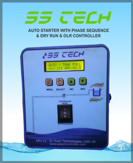 Feautures : Top Tank Level Control Bottom Tank Level Control Low Voltage Cut-Off Dry Run / Over Load Protection Dry Run Restart Timer Facility Delay On Timer Cyclic Timer 2 Line LCD Display User Programmable Current & Voltage Setting Recommended Load Upto 20A Suitable for : Self Priming Mono Block Pumps Single Phase Mono Block Pumps Single Phase Open Well Pumps Single Phase Jet Pumps Single Phase Compressor Single Phase Submersible Pump Â