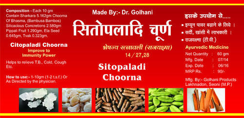 Being a high-flying name in this arena, we have developed a common network that links bank accounts and provide monetary exchange using bank deposits. We have a team of qualified personnel to ensure proper quality control of products is done so that products are as per buyer's quality requirements. Details : Composition - Each 10 gm Contain sharkara 5.162gm, choorna of Bhasma,(Bambua Bambos) Silcacious Concretions 2.580GM, Pippak Furit 1.250gm, Ela Seed 0.645gm, Tvak 0.323gm How to Use - 1-10gm(1-2 t.s.f) or as directed by the physician