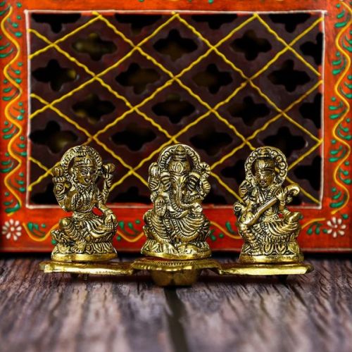 Light up your home with divine blessings and positive energy! This exquisite Sitting Laxmi Ganesh Saraswati Diya is a unique masterpiece that combines the beauty of traditional Indian art with the essence of spirituality. Made with premium Gillette metal, this diya serves the dual purpose of being a home decor item and a sacred symbol of worship. Its intricate design and radiant glow create a peaceful and serene atmosphere in your home.