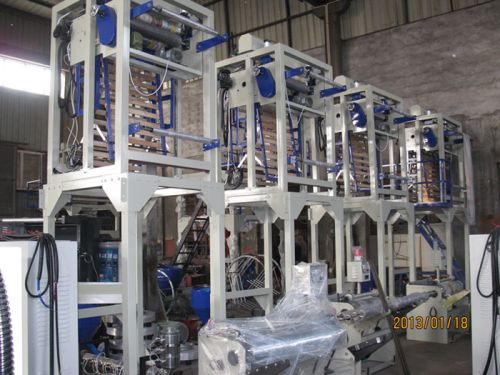 Contact SupplierSJ-A55 Single layer Film Blown Machine is used to make high density or low density polyethylene (HDPE or LDPE) into plastic film. It can produce packing film, laminating film, bags or film for textiles and clothing, agricultural covering film, and other packing material. The machine can can virgin material, also recycled material to produce film. The Film Blowing extruding machine includes following parts: screw and barrel, motor, inverter, die head, heaters,winder, and tower. The main motor have frequency control (inverter control) of motor speed to improve the speed regulation and save electricity of 30%. The screw & material barrel is made from a nitrogen-treated chromium-molybdenum-aluminum alloy, 38CrMoAl. Technical variables: Model A50 A55 A65 A65-1 Diameter of screw Φ50 Φ55 Φ60 Φ65 Reduced diameter of film(mm) 100-600 200-800 300-1000 400-1200 Single-face thickness of film(mm) 0.01-0.10 0.01-0.10 0.01-0.10 0.01-0.10 Max. Extrusion(kgh) 35 50 65 80 LD 28:1 28:1 28:1 28:1 Power of main motor(kw) 7.5-11 11-15 18.5-22 22 Power of Traction motor(kw) 1.1 1.1 1.5 1.5 Heating Power(kw) 11 13 19 21 Outline diameter(L*W*H)(mm) 4800*1900*3500 5500*2100*3800 6500*2300*4200 6500*2500*6000 Weight(T) 1.5T 2T 2.3T 2.6T