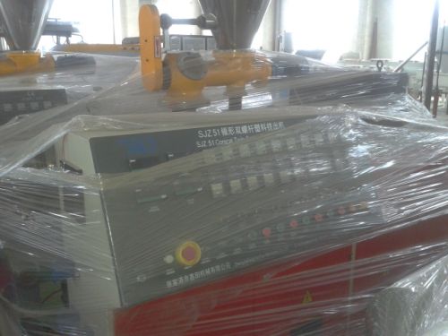 SJZ51/105 conical double-scre extruder This conical double screw extruder is special equipment which can extruder and mold by suing varios Kinds of PVC powders. equipped with different kinds of molds and zuxiliary machines, it can produce Various PVC pipes, profile, sheets, plates, bars and granulation. Main Tech Parameters: Model:Sjz51/105 Power of drive motor:18.5kw Screw diameter:51/105mm NO. of screw:2 Torsional moment of screw:6000 Capacity of PVC