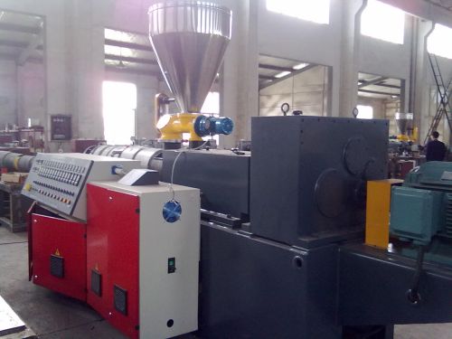 SJZ90/188 conical double-scre extruder This conical double screw extruder is special equipment which can extruder and mold by suing varios Kinds of PVC powders. equipped with different kinds of molds and zuxiliary machines, it can produce Various PVC pipes, profile, sheets, plates, bars and granulation. Main Tech Parameters: Model:SJZ90/188 Power of drive motor:110kw Screw diameter:90/188mm NO. of screw:2 Torsional moment of screw:32000Nm Capacity of PVC