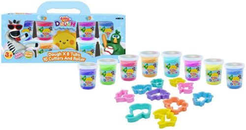 KD-8009- 8 COLORS, 8 TUBS OF DOUGH (50GM /EACH, TOTAL 400 GMS) + 10 CUTTERS and Mini Roller in Paper box.