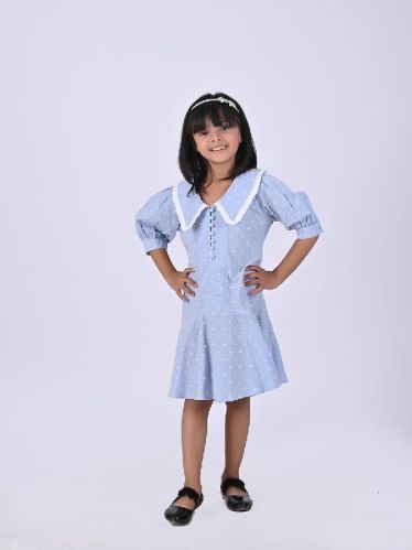Contact SupplierThe 40’s Vintage inspired featuring in big collar, mermaid shape midi length, contrast frill detail on collar and cuff, contrast hand stitch, puffy sleeves, and front opening with buttons.