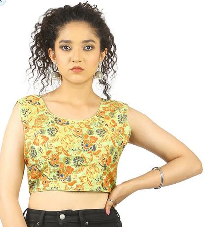 Parrot Green Flower Print Blouse, Size : 32, 34, 36