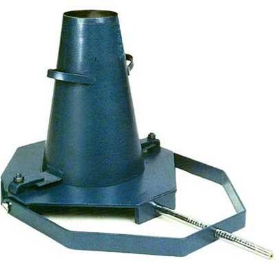 Slump Cone Test Apparatus is used for the Consistency Test of concrete. This is site and must to do test to confirm that the concrete is workable and can be laid at work place. Basic part of the apparatus is a steel cone, having 20cm bottom base, 10 cm top opening and 30 cm height. It is provided with two side handle for easy lifting and foot rest for holding the cone. Base is required for keeping the cone and also for measurement of slump. A graduated steel rod is used for tamping as well as measuring the slump. Slump funnel is also available for pouring the concrete into cone, without falling over its outer surface.