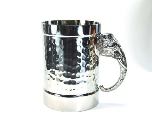 This Powder coated Stainless Steel Mug with Brass Elephant handle Designed to enhance the quaint, rustic charms of your bar, pub, or restaurant, this versatile mug boasts a solid german sliver plating exterior with an attractive shiny color complemented with a hammered finish.