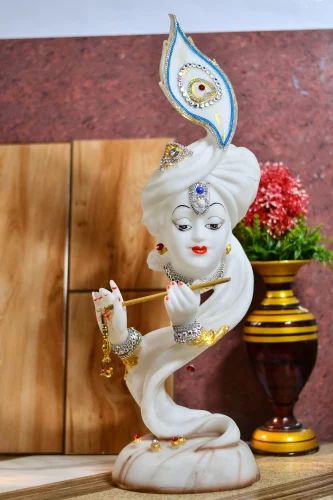White Small Pankh Krishan Marble Statue, For Home Decor, Packaging Type : Thermocol Box
