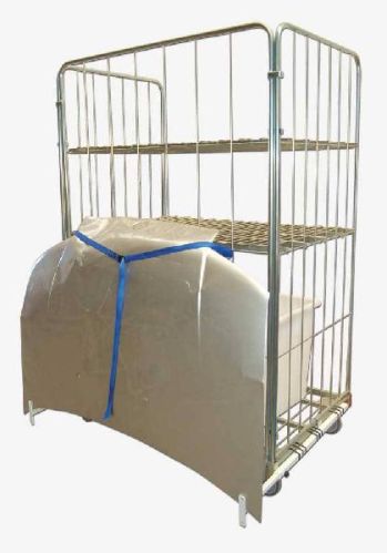 Small trolley for spare parts capacity kg 400. Equipped with particular wheels which allow an easy movement even on grids. Standard supply: 1 trolley with 3 sides 1 shelf cm 120 x 80 1 safety belt cm