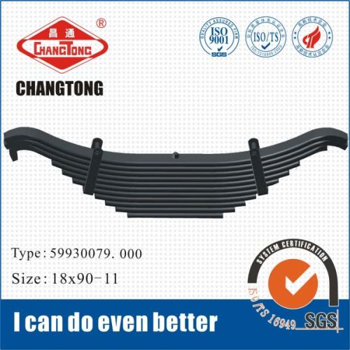We are offering small truck leaf spring. Leaf spring manufacturing process: 1.cutting of flat bar 2.center hole punching drilling 3.end heating process forming (hot & cold process) 4.heat treatment (1).heating (2).camber forming (3).quenching (4).tempering 5.surface preparation (1).shot peening stress peening (2).painting 6.assemble (1).presetting & load testing (2).paint touch-up (3).marking & packing