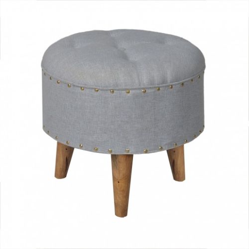 Our deeply cushioned, superbly comfortable Round Ottoman features a classic profile that allows it to work well both as a footrest and as extra seating in smaller spaces. It's hardwood base upholstered by pure linen with gold nails gives it a rich look that imbues character to every settings. What makes it special • Comfortable seating with cushioned seat • Handcrafted with hardwood tripod legs • Can be used as a extra sitting option & foot rest