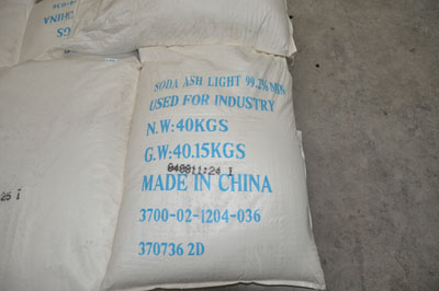 We are offering soda ash light 99.2% min soda ash light main containt: 99.20%min chlorides(nacl): 0.7%max sulfate: 0.03%max fe: 0.003%max water insoluble matter: 0.03%max ignition loss: 0.80%max packing: 25kg/40kg/750kg pp bags soda ash dense 99.2% min soda ash dense main containt: 99.20%min chlorides(nacl): 0.7%max sulfate: 0.03%max fe: 0.004%max water insoluble matter: 0.04%max ignition loss: 0.80%max density: 0.9g/ml particle size 180um sieve remaining: 70%min packing: 50kg/100kg pp bags.