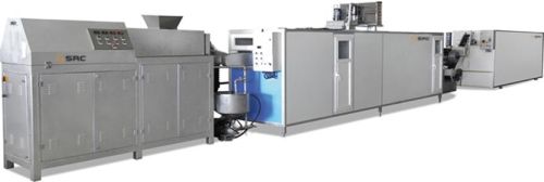 we offer soft candy production line scpl-2712 capacity 200kgh - 600kgh total motor power 28 kw total cooling power 11 kw total heating power 9k w belt type polurethane belt pump 2.2 kw crni stainless steel pump line sizes 1200mm x 1700 mm x 22000mm.