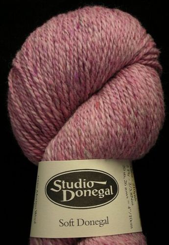 Our Soft Donegal is 100% Australian Merino wool, giving it an amazingly soft hand. The yarn is traditionally spun, complete with the large flecks that Donegal Irish tweeds are known for. 210 yards and 100 grams per skein. Pink.