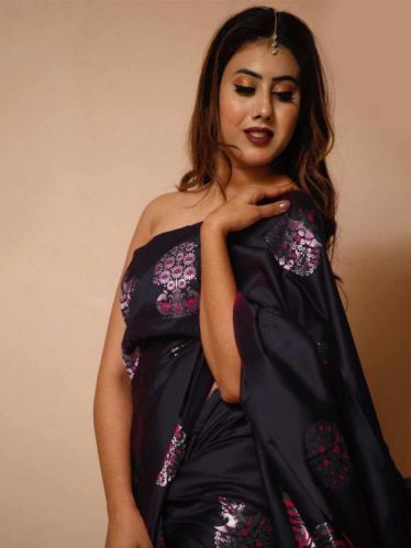 Soft Lichi Silk Peacock Print Saree, For Easy Wash, Dry Cleaning, Anti-Wrinkle, Shrink-Resistant