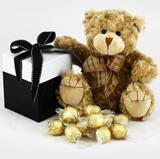 A soft and cuddly teddy bear complete with a cute gift box of delicious Italian milk chocolate truffles. A perfect gift for a friend or loved one on any special occasion. Contents: 1 extremely plush brown teddy bear, sitting at a generous 20cm tall 12 deliciously smooth and cream milk chocolate truffles that will melt in your mouth.