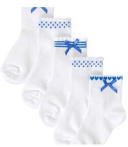 The all designer collection of the softy white ankle length socks comes with a soft textured base going in all white throughout. The top portion has the color break with dressy blue designer print and a bow print right at the side. Available in four distinctive designer prints. The socks are superior in quality and are soft, easy on feet and easy maintenance.