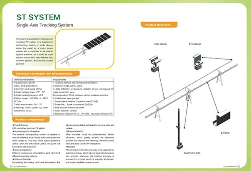 Single axis tracking system: our company is providing equipment and solutions for photovoltaic projects, including photovoltaic mounting structure designing & photovoltaic mounting structure producing.