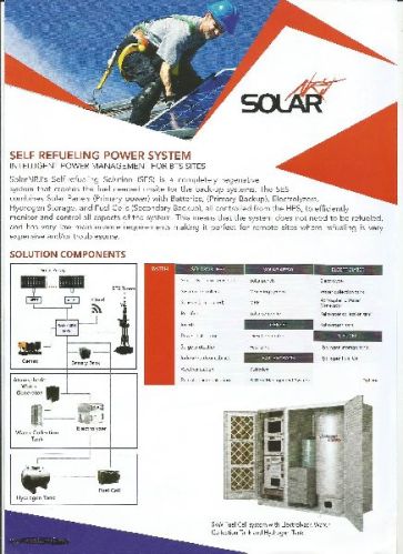 Contact SupplierSelf refueling Solution (SES)is a completely regenerative system that creates the fuel needed onsite for the back-up systems. The SES combines Solar Panels (Primary Power) with batteries, (Primary Backup), Electrolysers, Hydrogen Storage and Fuel Cells (Secondary Back-up) all control from the HPS, to efficiently monitor and control all aspects of the systems. This means that the system does not need to be refueled, and has very low maintenance requirements making it perfect fro remote sites where refueling is very expensive and trublesome