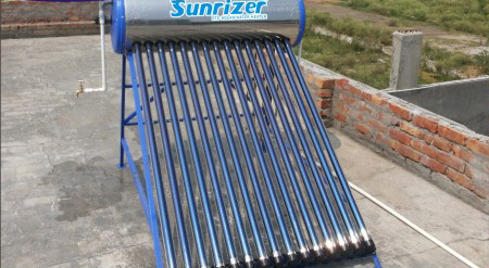 the outer part of the inner tube is coated with aluminium nitride that can endure a temperature of upto highest degree the vacuum tubes absorb the sunlight and convert the solar energy into power. Continuous circulation of water through the vacuum tubes increases the temperature of the water continuously. Heat preservation tank ensures water is kept for a longer duration. The cold water enters the collector tubes and during day time when solar rays strikes on the collector tubes the water gets heated to the highest possible temperature which rises upward according to the thermosiphon principle and hot water being lighter gets collected up in the upper part of solar storage tank and cold water remains at the bottom of tank and this cycle continues.