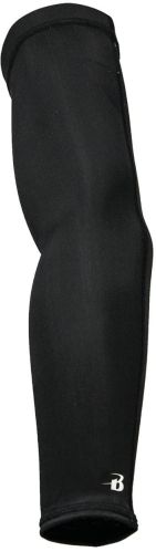 83% Polyester17% spandex -Moisture management Full arm stretch compression fit Flat seam construction with 1'' elastic at bicep opening Badger heat seal logo at bottom hem
