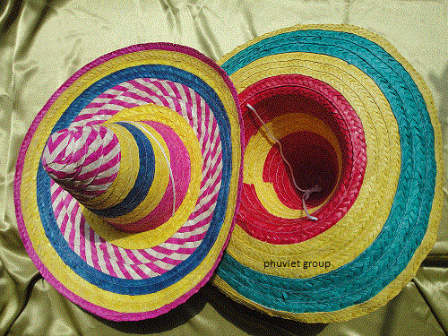 Material: palm leaf and seagrass Size: 58 cm or customer’s size Colors: Natural Dyed :Black, Red, Blue, Pink, Green, Yellow and Orange Hatband colors: White, Black, Red, Brown, Yellow and Orange
