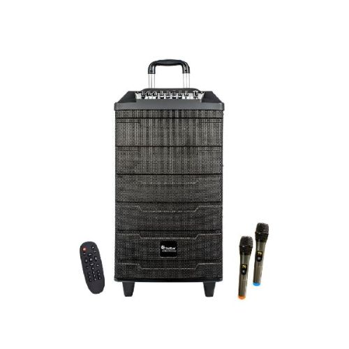 Bluetooth Karaoke Speaker  B-4 Brand :- SOROO Model no :- B-4 series Speaker type :- Trolley Speaker Watt :- 80 watt Speaker :- 12 inch Recording :- Yes FM radio :- Yes No of mic :- 2 wireless karaoke Microphone