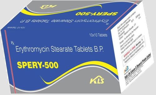 Contact SupplierWe are prominent Manufacturer, Exporter and Supplier of Spery-500 Tablets (Erythromycin 500 mg Tablets). Greatly used for treating infections caused by bacteria, our Spery-500 Tablets contain the active ingredient erythromycin, which is a type of medicine known as a macrolide antibiotic. Erythromycin works by preventing bacteria from producing proteins that are essential to them. Without these proteins the bacteria cannot grow, replicate and increase in numbers. Erythromycin doesn’t directly kill the bacteria, but leaves them unable to increase in numbers. The remaining bacteria eventually die or are destroyed by the immune system.