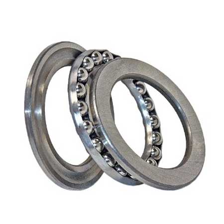 ball thrust bearings - composed of ball bearings supported in a ring, can be used in lower thrust applications where there is little radial load. Washers may be flat or grooved. Miniature thrust bearings starting with bores as small as 2 mm but as large as 340 mm.