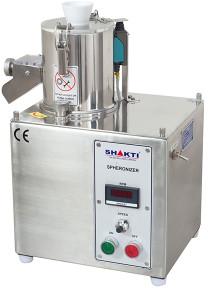 Contact SupplierThis Equipment used for R & D or Teaching work with small quantities rare and expensive development compounds. Spheronization is widely used within the pharmaceutical and allied industries. Spheroids are small spherical beads or pellets. That is generated in a Spheronizer from extruded material. The diameter of the spheroids is largely determined by the diameter of the Extrudate. You can use spheroids when incompatible active ingredients need to be presented in a single dose or when you require an active ingredient to have different release rates within a single formulation. With spheroids you can have excellent flow and metering properties as well as packing uniformity. With spheronization you can reduce or eliminate dust hazards. Typical spheroid sizes are from 0.8mm to 3.0mm. The Spheronizer has an easy to use operating structure. The front panel has ‘Start’ button, ‘Stop’ and ‘Emergency stop’ button along with indicators for ‘Power on’, ‘Motor on’ and a speed control device that allows changes in disc speed during the spheronization process if required.