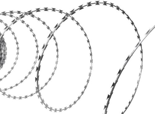 Spiral razor wire is the simplest pattern in a barbed tape coil where there are no clips binding adjacent loops and each coil loop is left free in its natural spiral. Spiral razor wire can also be used as straight runner wire when stretched totally.